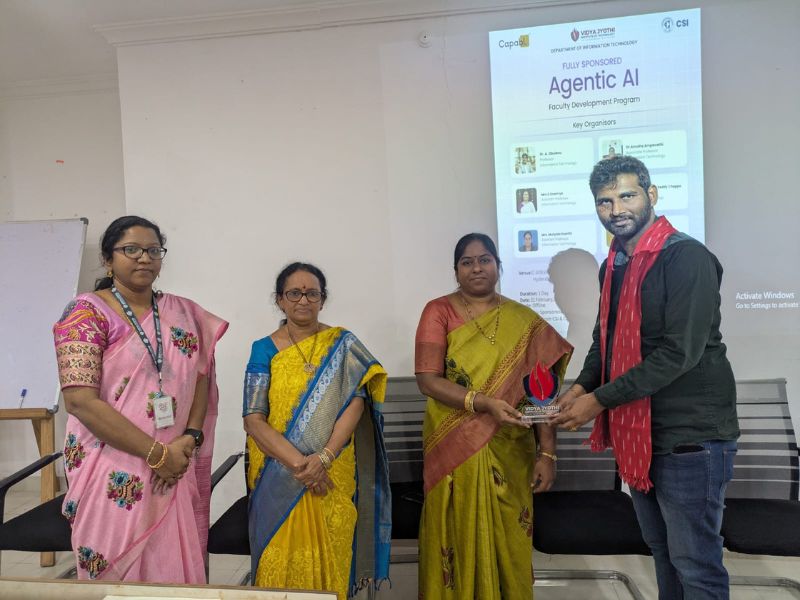 Fully Sponsored | One-Day Offline Program The Department of Information Technology, Vidya Jyothi Institute of Technology, Hyderabad, in association with CSI and Capabl, is organizing a Fully Sponsored Faculty Development Program (FDP) on Agentic AI. This one-day FDP is designed to provide faculty members with practical insights into Agentic Artificial Intelligence, focusing on autonomous AI agents, real-world…