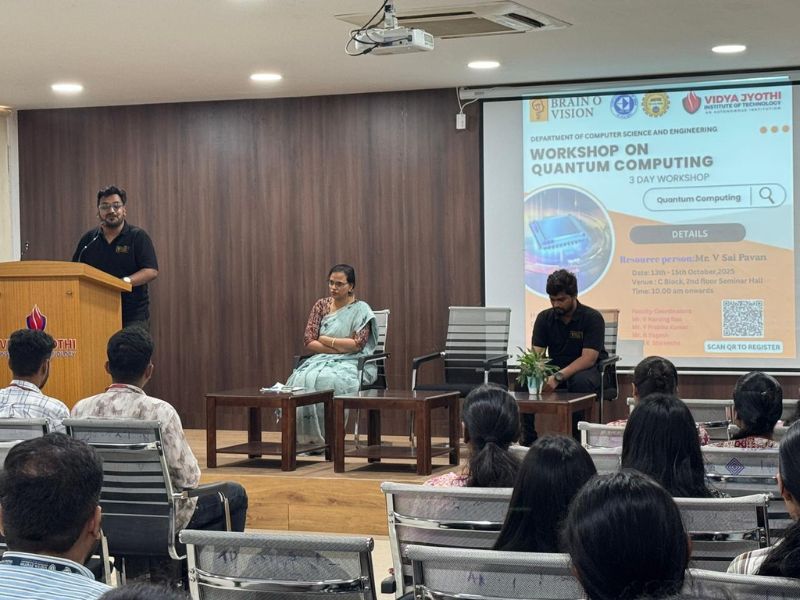 The Department of Computer Science & Engineering at Vidya Jyothi Institute of Technology (VJIT), in association with Brain O Vision Solutions Pvt. Ltd., AICTE, and the Computer Society of India (CSI), successfully organized a three-day workshop on Quantum Computing from October 13th to 15th, 2025.