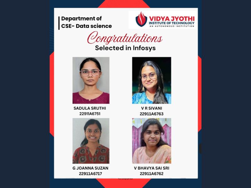 The Department of Computer Science & Engineering (Data Science) is proud to announce that four of our students have been successfully recruited by Infosys, a globally recognized leader in IT services and digital transformation.