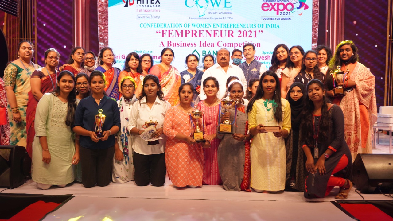 On the Occasion of International Women’s Day Young Cowe has promoted Entrepreneurship at the college level for young girls “Fempreneur 2021 A Business Idea Competition”, Telangana Women’s Entrepreneurship Ideathon. The VJIT ECE students had rocked the event with their excellent innovative ideas and bagged the First Prize with 10K cash award, Second Prize with 8K cash award and Two Consolation Prizes for their idea each 5K. The Trophies and Cheques were given to Winners by Mr. kamalakar, BC Welfare Minister and Mr. Jayash Ranjan IAS.