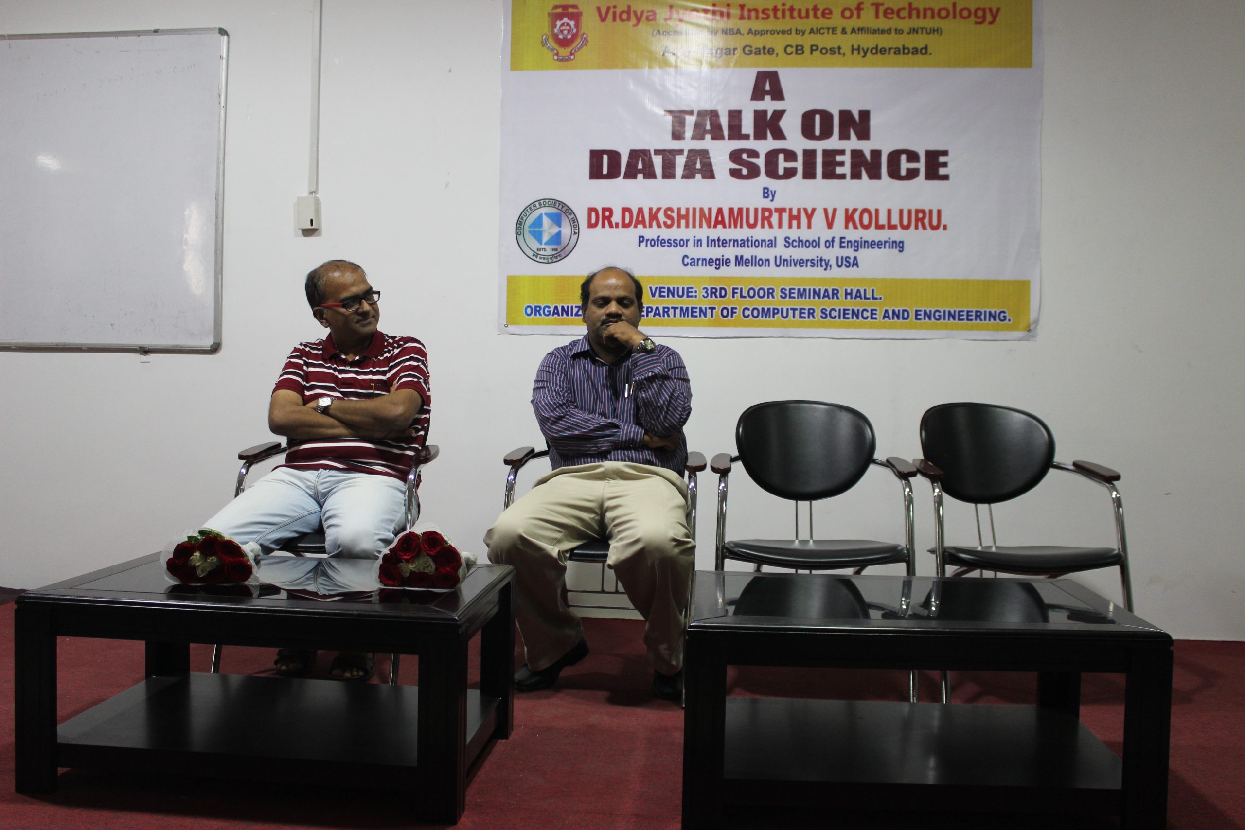 A One Day Seminar “Data Science” was conducted on 10th October 2014 by Dr. Dakshinamurthy is a educator, consultant, Scientist and entrepreneur, INSOFE, He explained about what is data science and importance of it. He also explained how to find the faulty pace makers with real time examples and the future and career enhancement in data science.