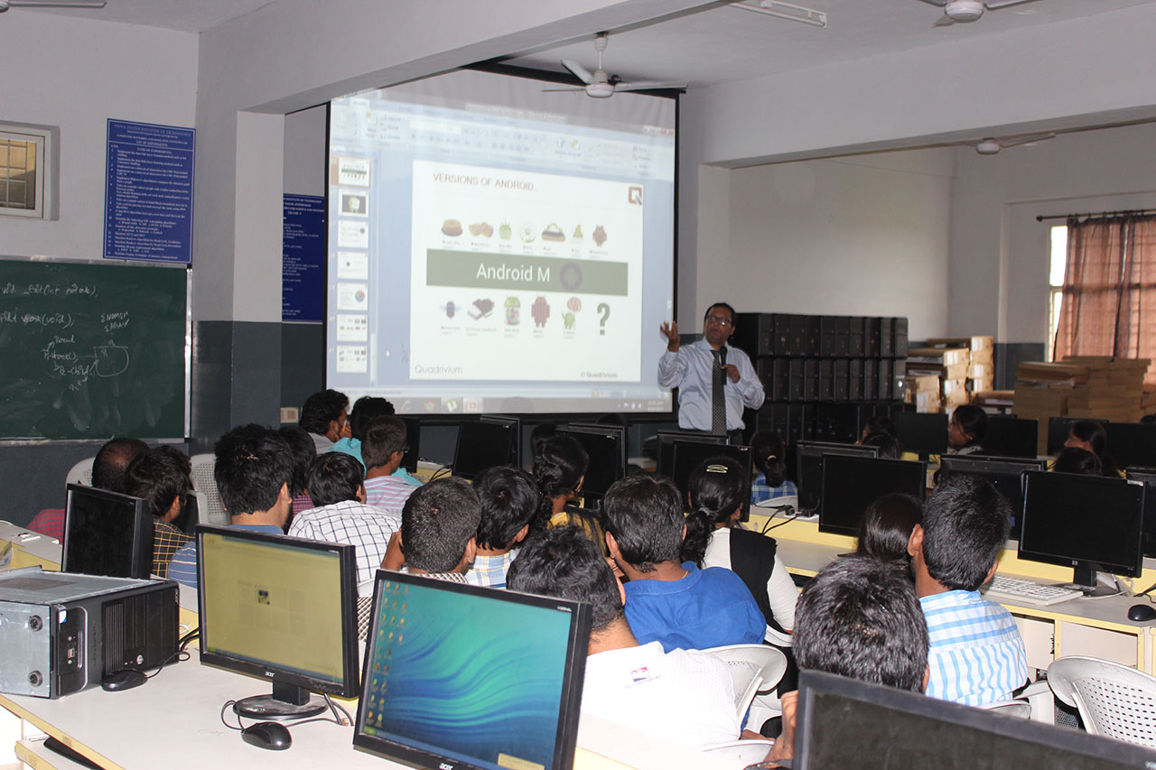 A two day workshop on “Android programming for smarter application” held by cse dept. on 10th and 11th of September 2015 under CSI chapter by Mr. Dinesh, CEO of Quadrium Software Ltd., He explained about what is an Android how to develop own android application, its applications and future scope.