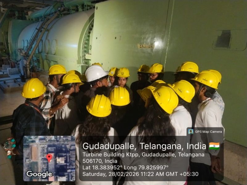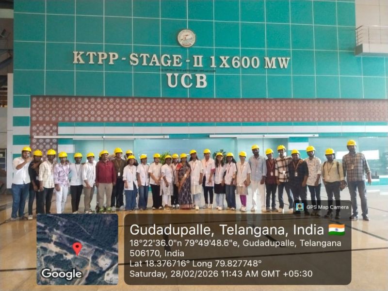 As part of our academic curriculum and to gain practical exposure to the generation of electrical power, the III Year IISemester students of the Electrical and Electronics Engineering (EEE) department, visited Kakatiya Thermal Power Project (KTPP) located at Chelpur, Jayashankar Bhupalapally District, Telangana State on 28th Feb 2026. And II Year II Semester students of the Electrical and Electronics Engineering (EEE) department, visited KTPP on21 Feb 2026.