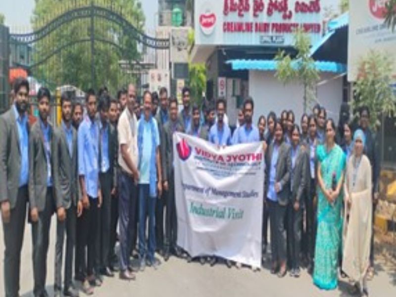 The Department of Management Studies, Vidya Jyothi Institute of Technology, successfully organized an industrial visit to Godrej Creamline Dairy Limited, Uppal, Hyderabad, for MBA I Year students on 2nd and 3rd May 2025. Students from Section A visited the plant on 2nd May, followed by Section B on 3rd May.
