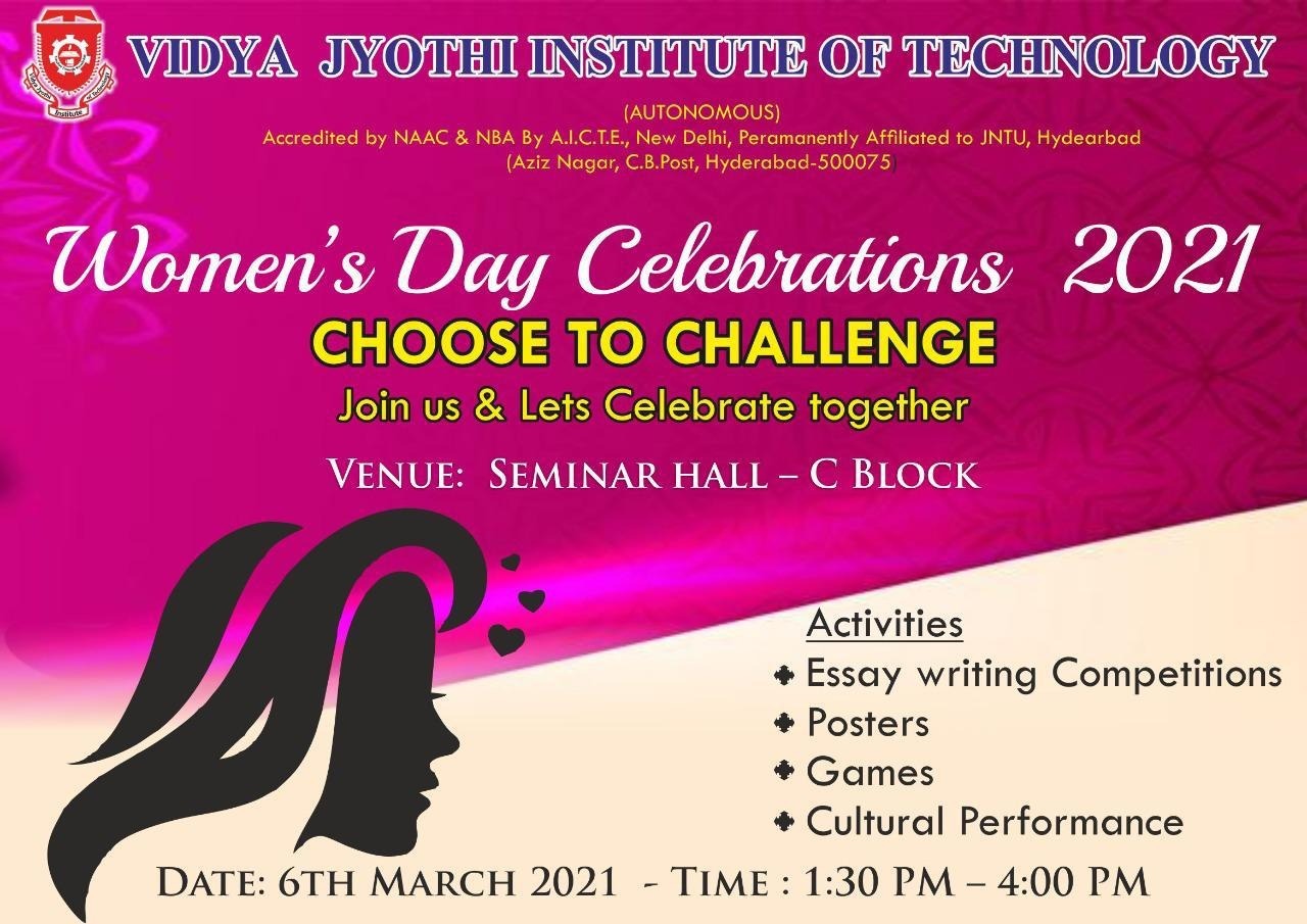 The International Women’s Day 2021 Celebrations have been observed at VJIT to celebrate the purpose of woman being an achiever in every field she treads. Women have proven their mettle in every sphere across the world. The Coordinators Dr D. Aruna kumari, Ms. M. Vijayashanthi and Ms. M. Sujatha have organized the program with a great zeal. A Panel Discussion was organized on “Women Empowerment and Prevention of Sexual Harassment” moderated by Ms. Sree Latha Shankar with participant panel members, students and faculty of VJIT.