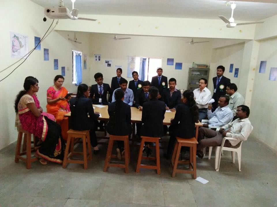 The session was carried on in three rounds. First round was a written test for 25 marks to be answered in 30 minutes, in which 18 students were shortlisted to second round i.e.: group discussion. GD was conducted in 2 batches consisting of 8 students in each batch. 4 students from each batch were further shortlisted to last round i.e.: personal interview round. After the third round 3 students viz; G.Roja (15911E0015), C.Anusha (15911E0007) and P.Prasad (15911E0029) were awarded with appointment letter.