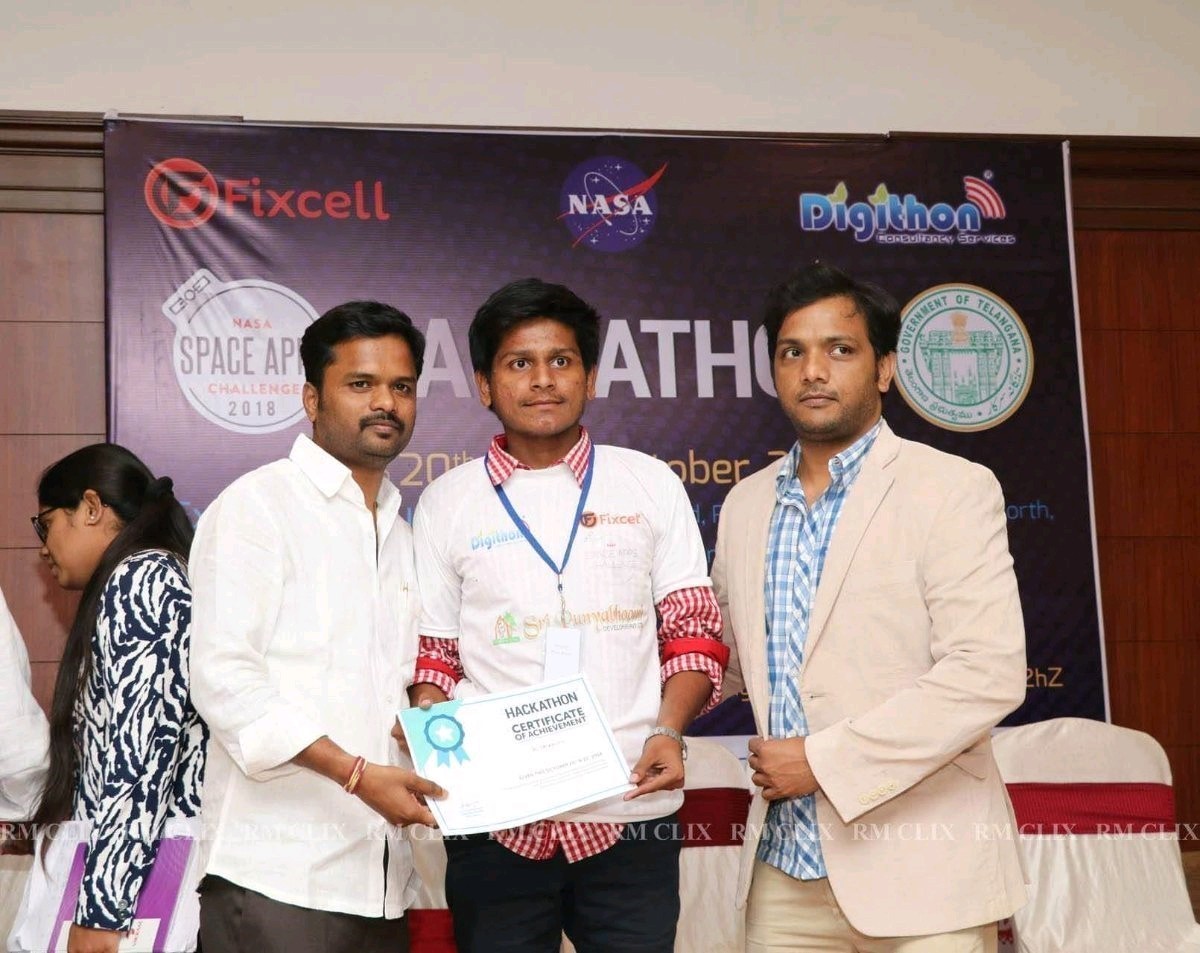K Srikanth of the Mechanical Department has received an achievement award for showing exemplary performance in the challenges taken in NASA Space Apps 2018 and Smart City HACKATHON on 20th and 21st Oct 2018 at Exhibition Grounds, Hyderabad. It is an inter-disciplinary project of 2 days HACKATHON conducted by NASA SPACE APPS CHALLENGE 2K18 under which Srikanth has created an app namely “Whats next!”. It is a tool to track international rocket launch.