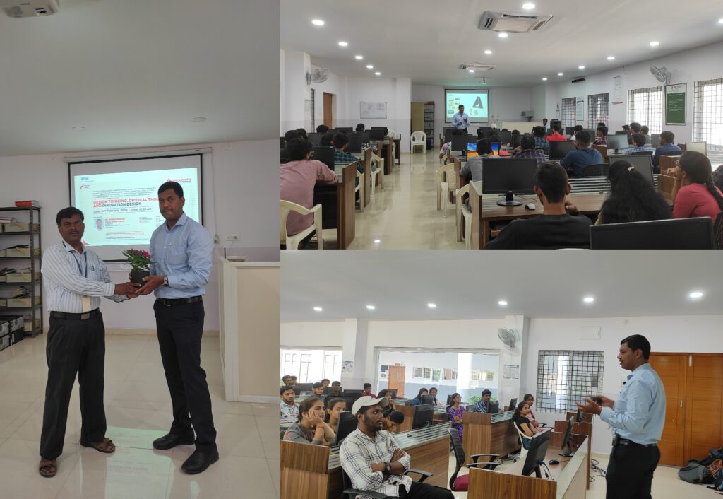 The event had a whooping number of 70 participants of whom 68 were students and 02 Faculty members. The session mainly focused on design thinking, critical thinking and innovation design. Critical thinking is so ingrained in our day to day activities so intuitively. But we don’t realize and we constantly use them in different situations. Interesting interactions during the session took place which is commendable work to support students to build their knowledge towards innovation and entrepreneurship.