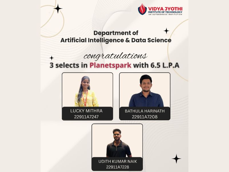 Placement Achievement at Planet Spark for CSE(Data Science) Students
