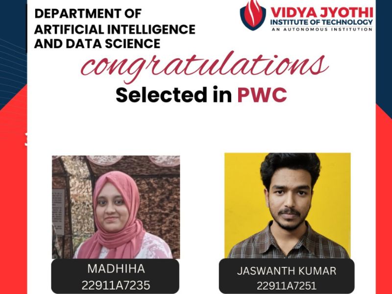The Department of CSE(Data Science) is proud to share that our students have been successfully selected by PwC, one of the world’s leading professional services networks known for its excellence in consulting, assurance, and technology-driven solutions.