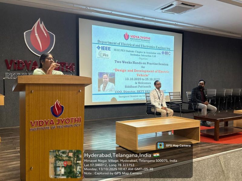 The session was graced by principal, Dr A.Srujana, who addressed the gathering with an inspiring speech, highlighting the importance of skill based learning and encouraging students to actively participate and make the most of this workshop. We were honored to welcome Mr. siddhant pattanaik, COO & Director, SKYY Skill Academy, as the guest of the day,who shared valuable insights on the future of Electric Vehicles.