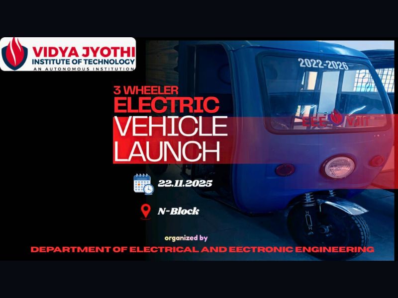 Finally the department of Electrical & Electronics Engineering officially launched a 3 wheeler electric vehicle, designed and developed by EEE Final year students. The symbolic EV key was handed over to Director-Placements, R. Venkata chalam, marking the beginning of a new chapter in innovation and practical engineering at VJIT.